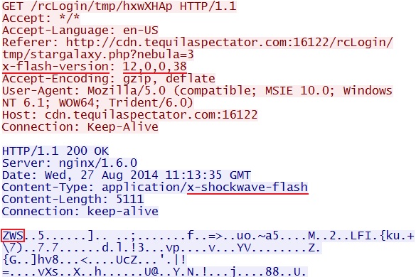 - 2014-08-27 11:13:37 UTC - 95.163.121[.]188:16122 - cdn.tequilaspectator[.]com:16122 - GET /rcLogin/tmp/hxwXHAp
