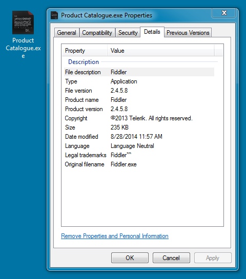 File name: Product Catalogue.exe