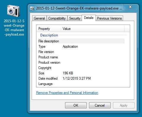 File name: 2015-01-12-Sweet-Orange-EK-malware-payload.exe