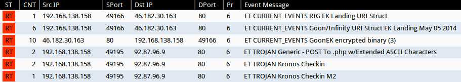 - 46.182.30[.]163 port 80 - ET CURRENT_EVENTS Goon/Infinity URI Struct EK Landing May 05 2014 (sid:2018441)