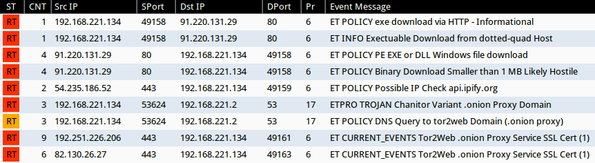 - 91.220.131[.]29 port 80 - [1:11192:16] FILE-EXECUTABLE download of executable content