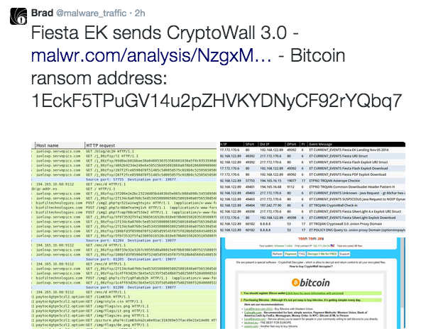 - The malware payload caused a CryptoWall 3.0 ransomware infection.