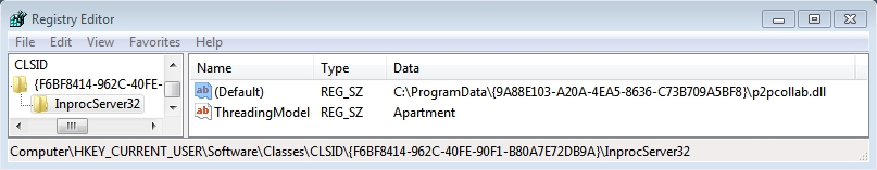 REGISTRY CHANGES NOTED ON THE INFECTED HOST