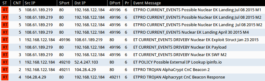 - 108.61.189[.]219 port 80 - ETPRO CURRENT_EVENTS Nuclear EK Landing April 30 2015 M4 (sid:2810879)