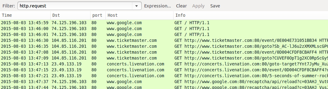 SCREEN SHOTS FOR SOME OF THE POST-INFECTION TRAFFIC: