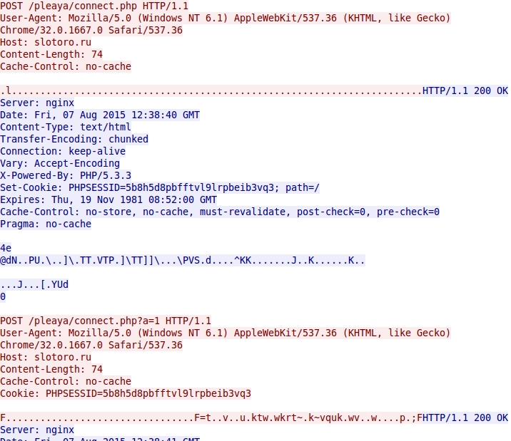- 2015-08-07 12:39:19 UTC - slotoro[.]ru - POST /pleaya/connect.php?a=1