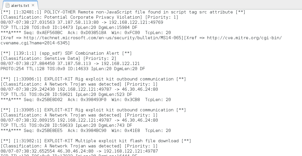 - 46.30.46[.]24 port 80 - [1:31902:1] EXPLOIT-KIT Multiple exploit kit flash file download