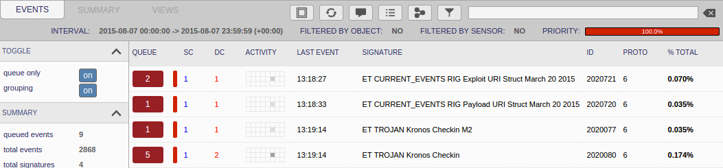 Suricata using the Emerging Threats open ruleset on Security Onion (not including ET INFO or ET POLICY rules):