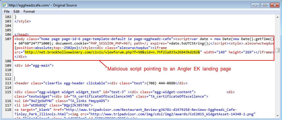 - 2015-08-14 14:02:13 UTC - eggheadzcafe[.]com - GET /