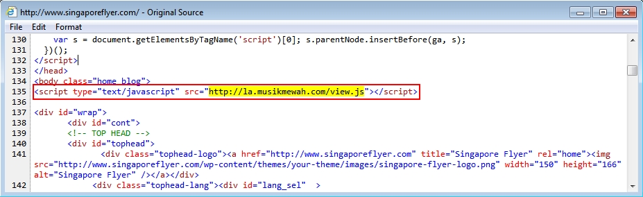 - www.singaporeflyer[.]com - Compromised website