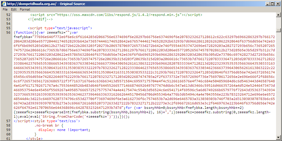 Shown above: "admedia" script injected into the initial HTML page from the compromised website.