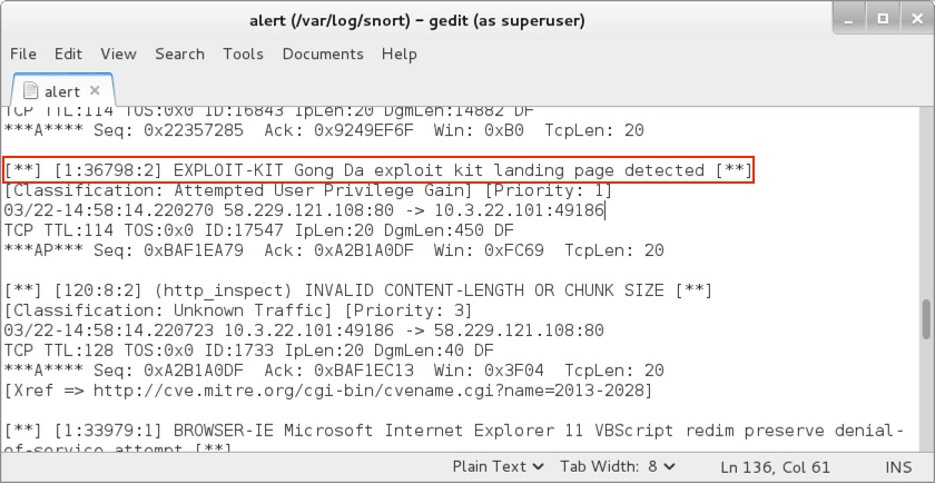 Shown above: Some of the alerts from Snort using the Talos Subscriber ruleset.