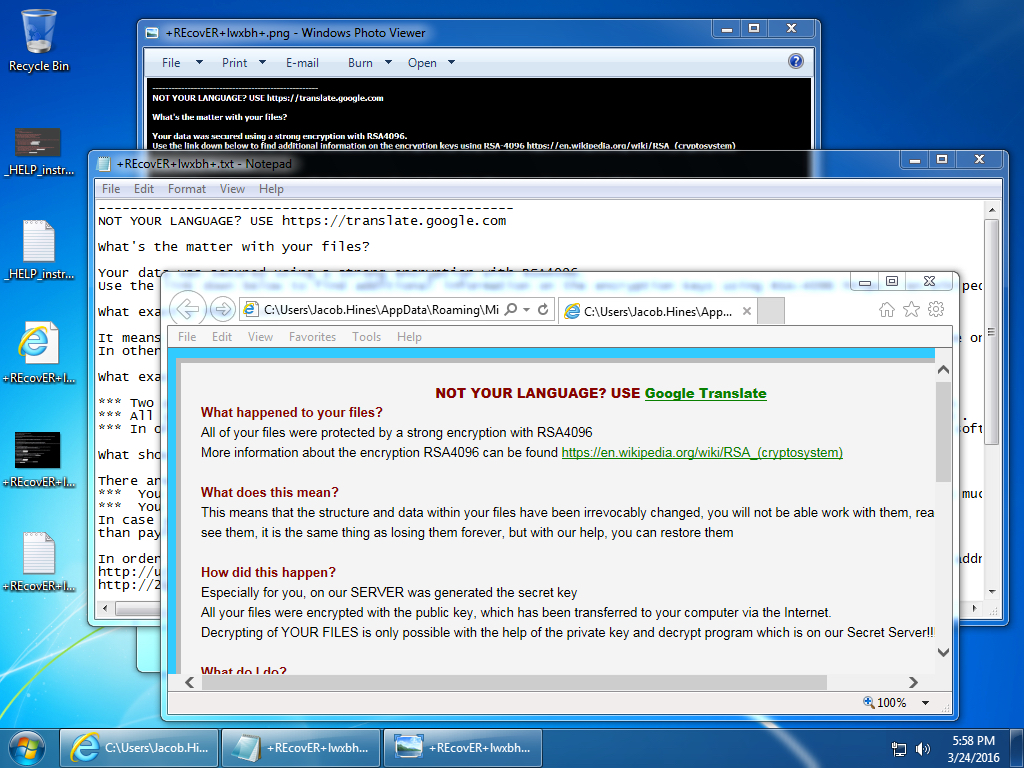 The TeslaCrypt ransomware sent by Angler EK encrypted the text file for Locky ransomware's decryption instructions (Locky sent by Nuclear EK).