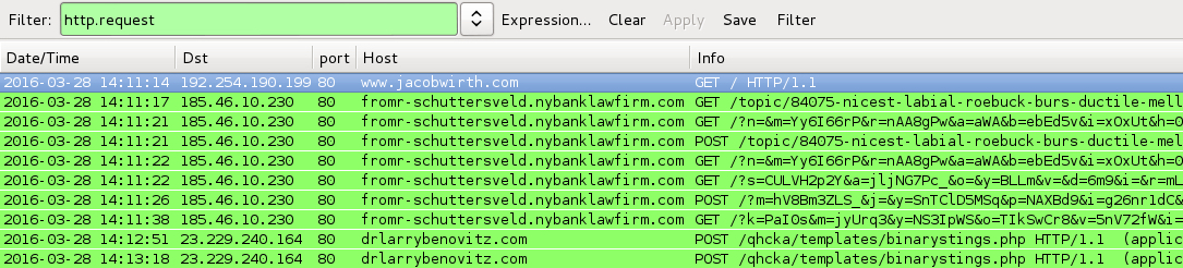 - 23.229.240[.]164 port 80 - drlarrybenovitz[.]com - POST /qhcka/templates/binarystings.php [TeslaCrypt ransomware post-infection traffic]
