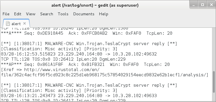 Shown above: Talos signatures also triggered for TeslaCrypt ransomware on the post-infection traffic.