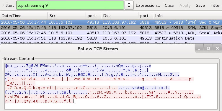 Shown above: Tofsee post-infection traffic on 113.163.97.192 over TCP port 5818.