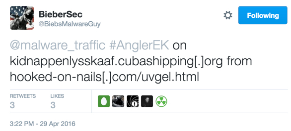 Shown above: Tweet near the end of April 2016 about today's compromised website.