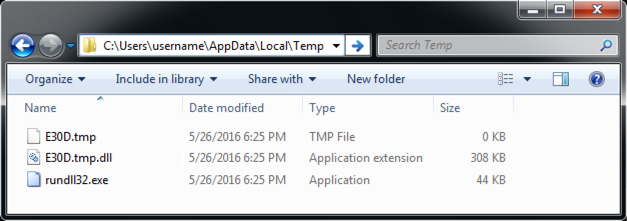 - This time, rundll32.exe is copied to the AppData\Local\Temp without being renamed as svchost.exe like it was before.