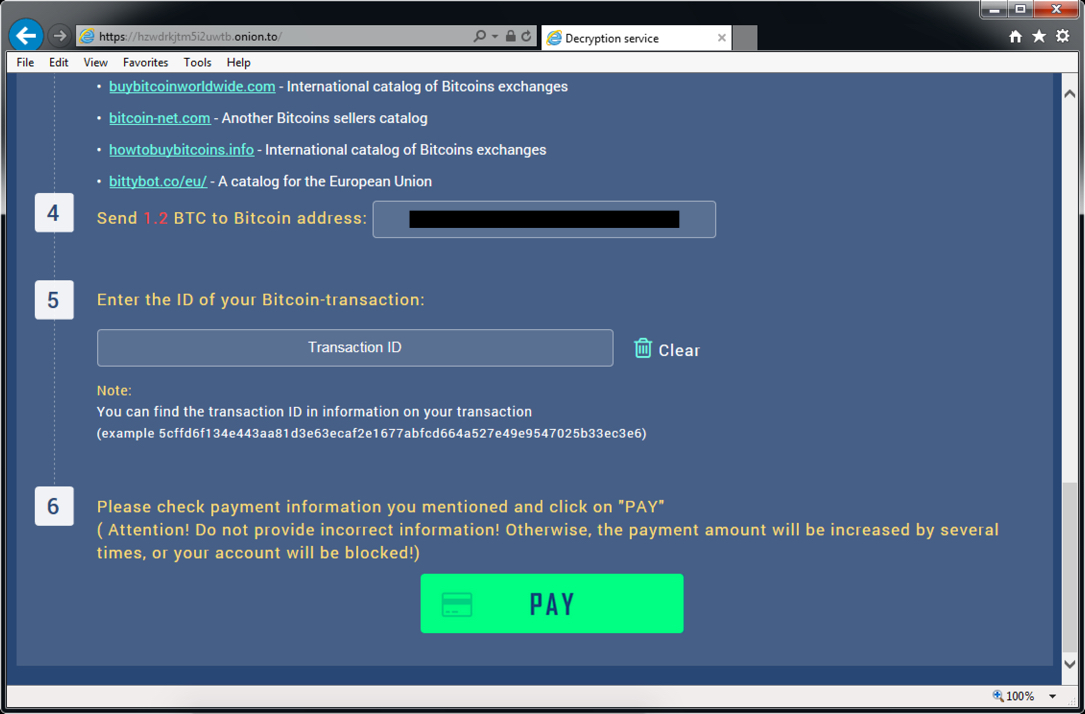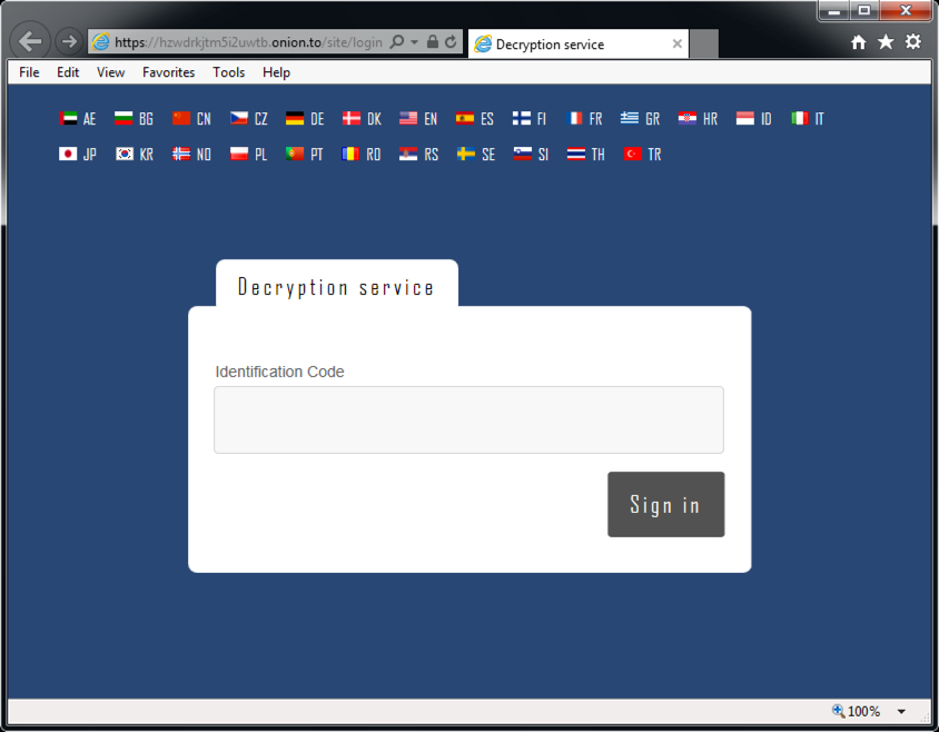 Shown above: Going to the site to pay the ransom, you'll have to enter your code.