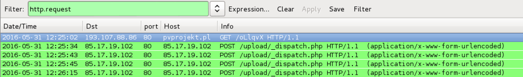 - 85.17.19[.]102 port 80 - 85.17.19[.]102 - POST /upload/_dispatch.php