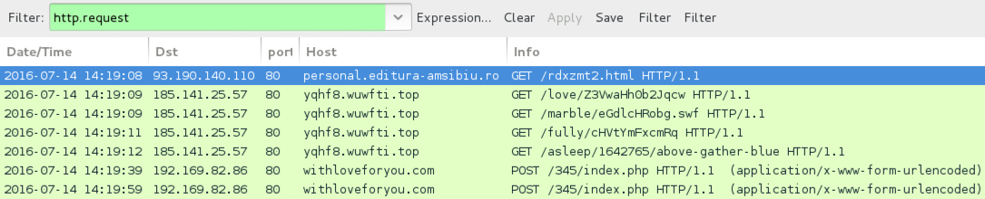 Shown above: Traffic from the pcap filtered in Wireshark.