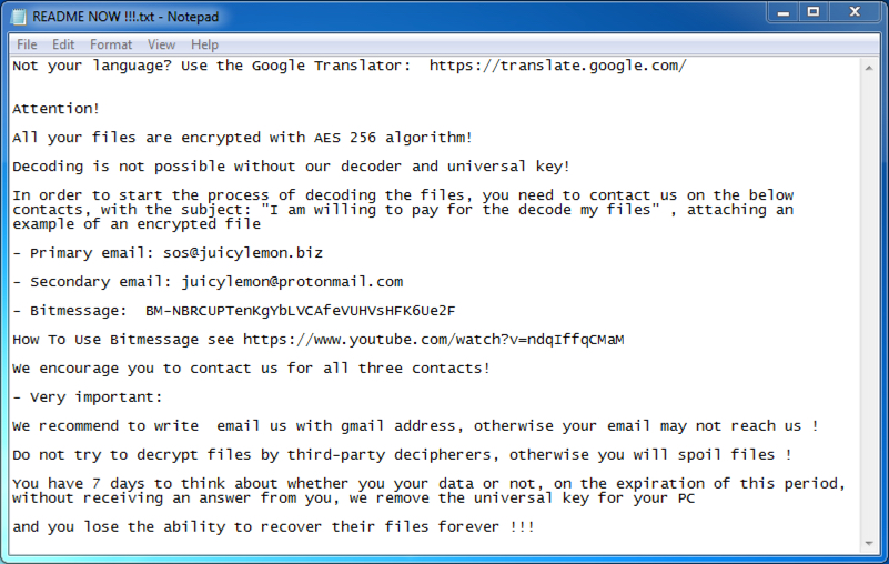 - Secondary email: juicylemon@protonmail[.]com