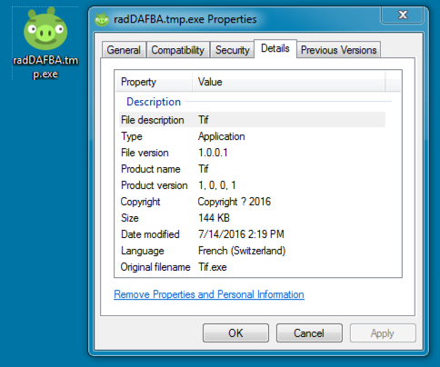Shown above: The payload EXE's icon looks like a pig from Angry Birds.