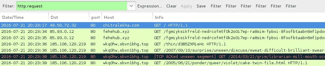 Shown above: Traffic from the pcap filtered in Wireshark.