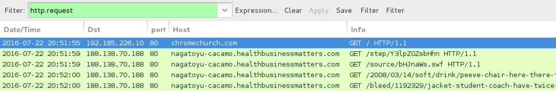 - I've noticed chromechurch[.]com compromised as early as 2016-06-30 and redirecting to Neutrino EK.
