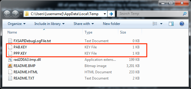 Shown above: Two .KEY files in the user's AppData\Local\Temp directory.
