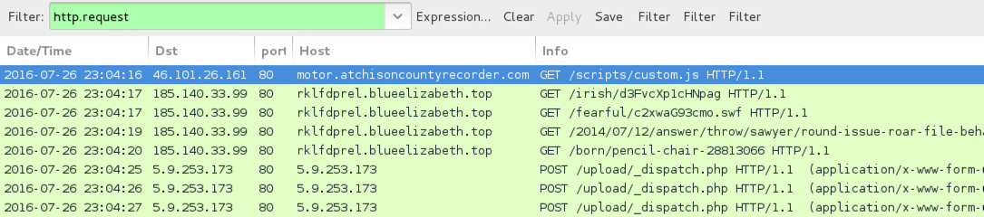 - 46.101.26[.]161 port 80 - motor.atchisoncountyrecorder[.]com - GET /scripts/custom.js - [Afriadgate redirect]