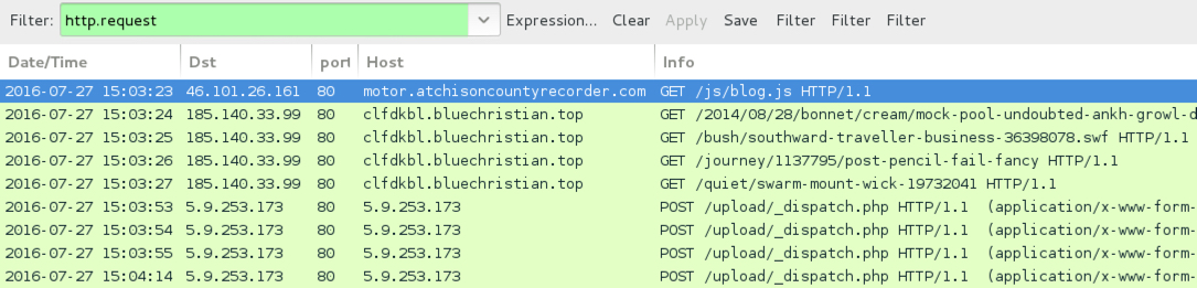 - 5.9.253[.]173 port 80 - 5.9.253[.]173 - POST /upload/_dispatch.php - [Locky ransomware post-infection traffic]