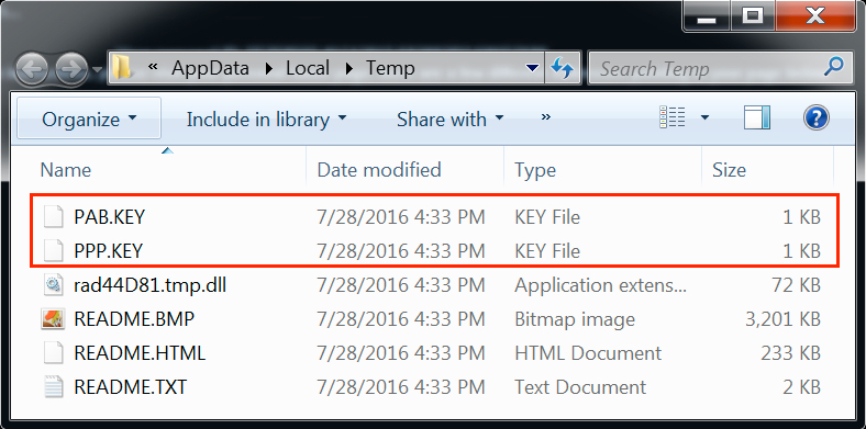 Shown above: Two .KEY files in the user's AppData\Local\Temp directory.