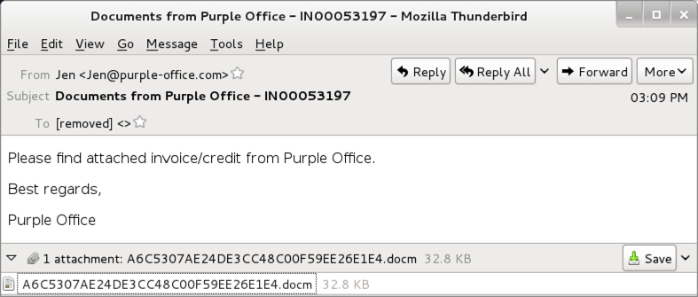 - From: Jen <Jen@purple-office[.]com> - Subject: Documents from Purple Office - IN00053197