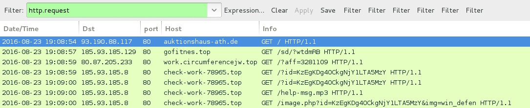 Shown above: Traffic from the pcap filtered in Wireshark.