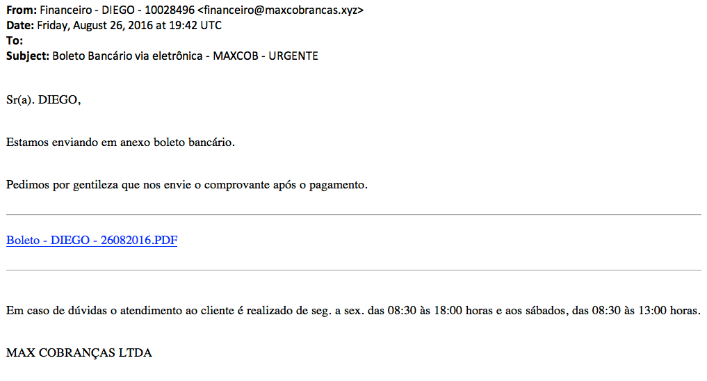 - 2016-07-25 - Boleto campaign - Subject: Boleto de Cobranca - FIX - URGENTE