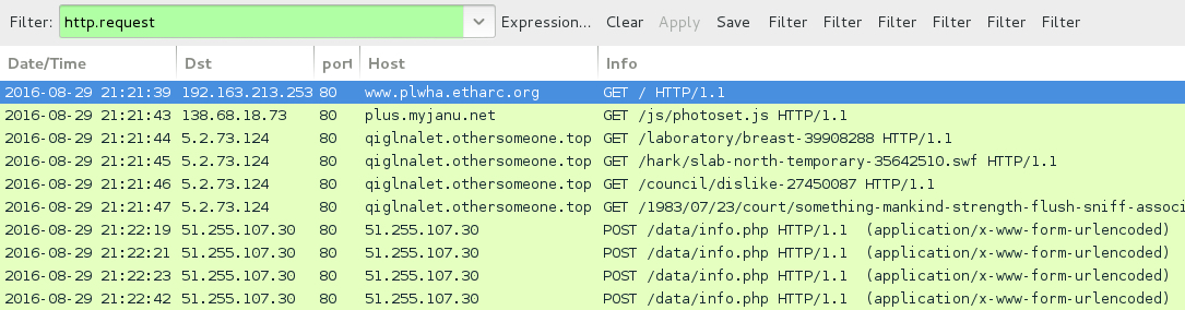 Shown above: Traffic from the pcap filtered in Wireshark.