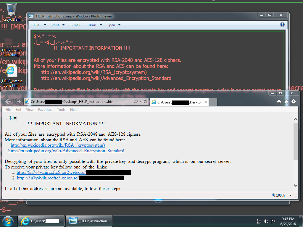 Shown above: Desktop of the infected Windows host.