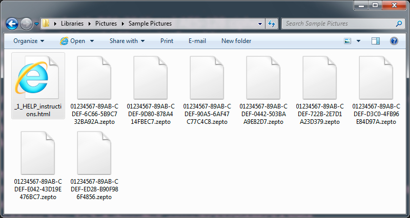 Shown above: Encrypted file names showing this is the Zepto variant of Locky ransomware.