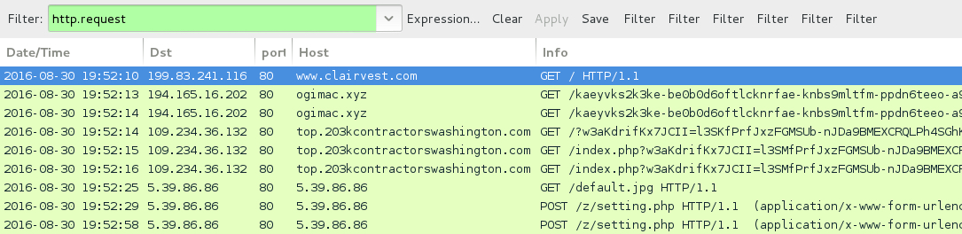 Shown above: Traffic from the pcap filtered in Wireshark.