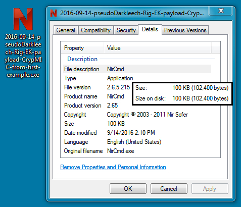 - 2016-09-14-pseudoDarkleech-Rig-EK-payload-CrypMIC-ransomware-from-first-example.exe (102,400 bytes)