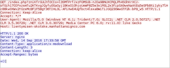 Shown above: Saw a lot of this today when Rig EK attempted to retrieve the malware payload.