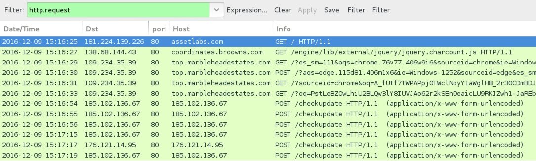 - 176.121.14[.]95 port 80 - 176.121.14[.]95 - POST /checkupdate - Locky ransomware post-infection callback