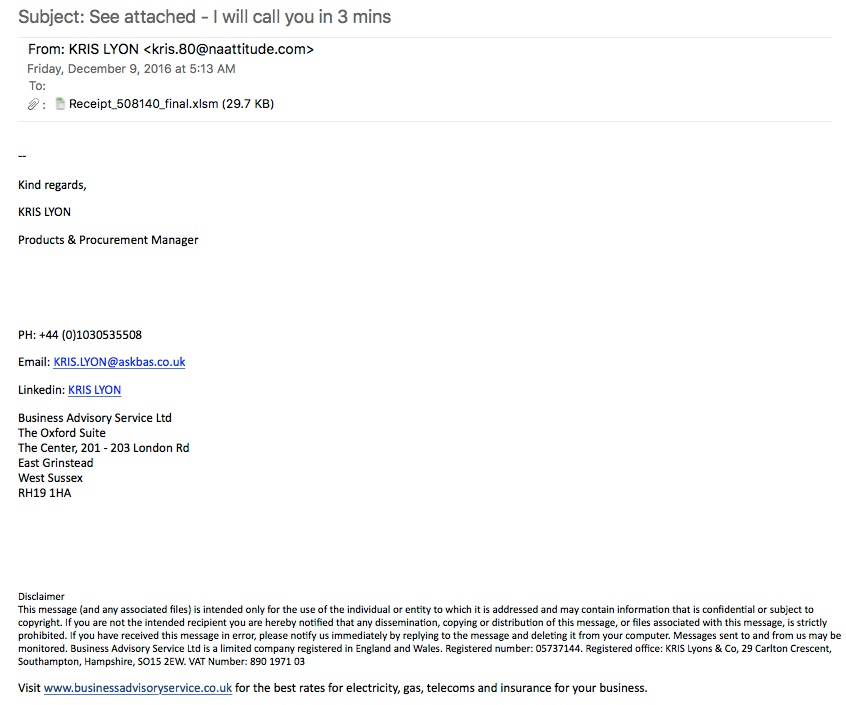 Shown above: An example from second wave of these emails.
