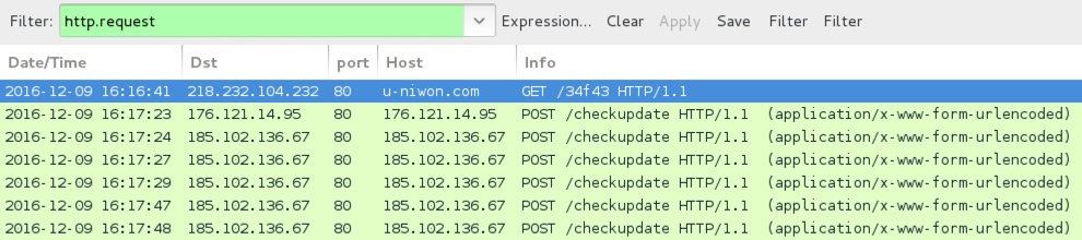 - 185.102.136[.]67 port 80 - 185.102.136[.]67 - POST /checkupdate