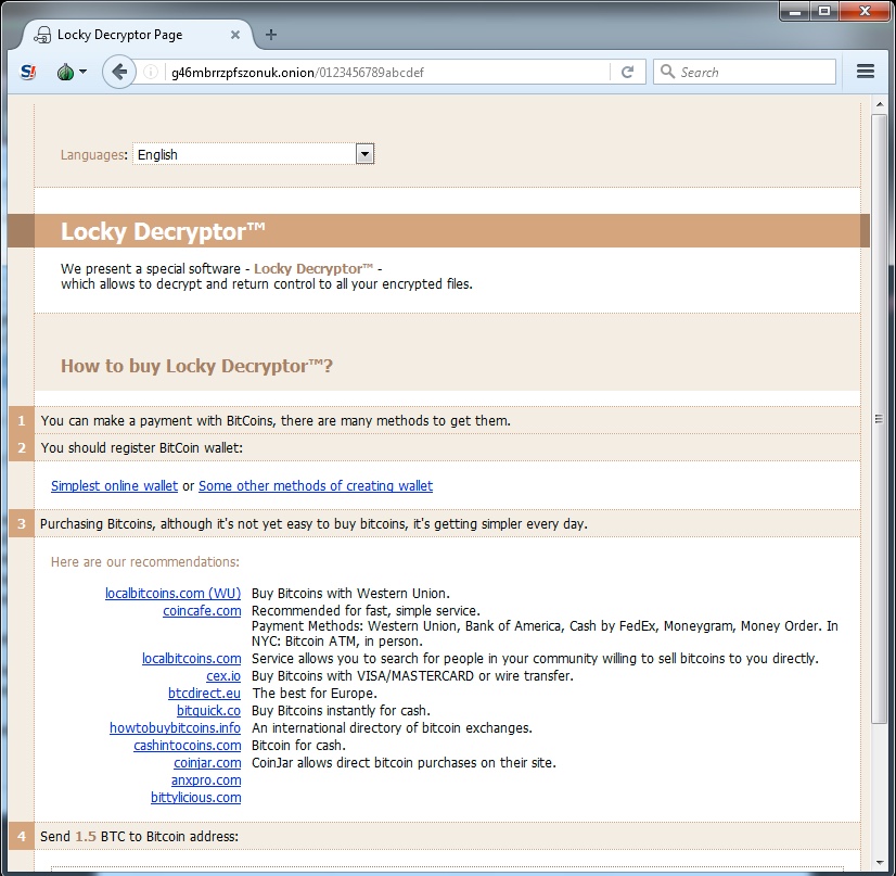 Shown above: Ransom payment was 1.5 bitcoin for the infections I generated.