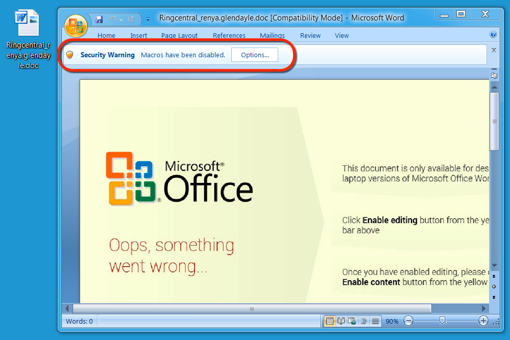 - From: (spoofed) "RingCentral" <message@faxcentral[.]com>
