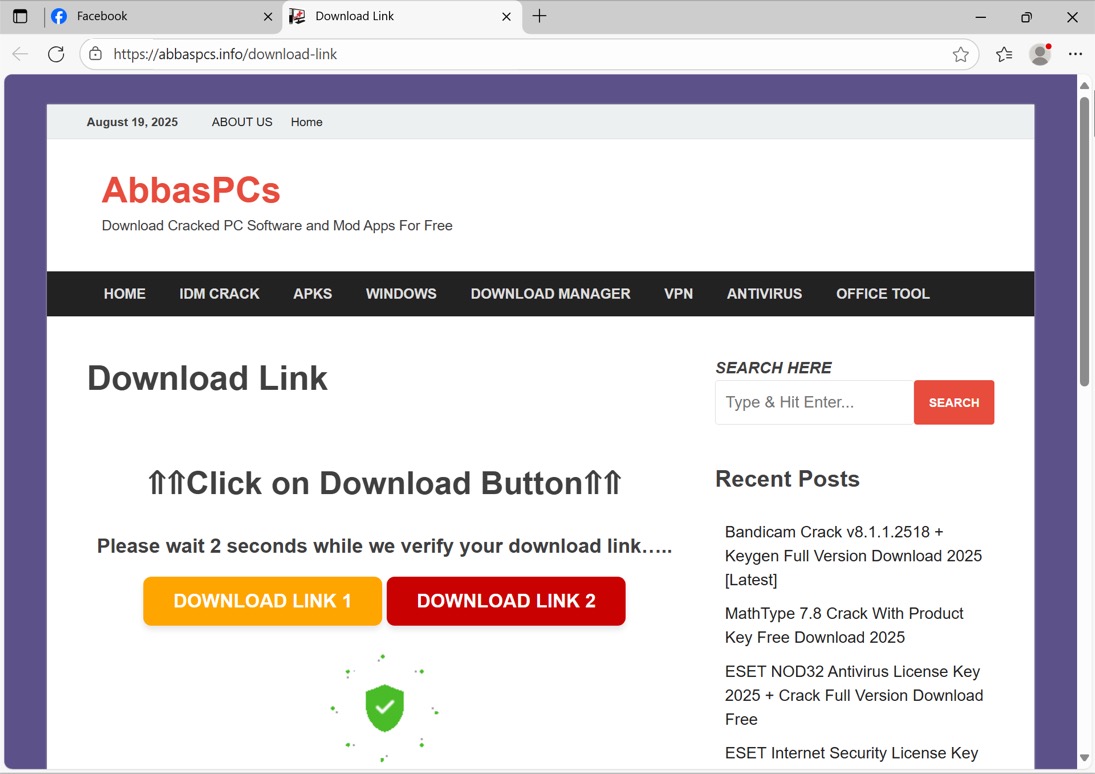 Shown above: Page for fake software crack.