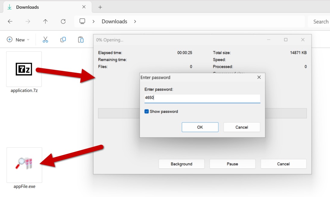Shown above: Opening the password-protected 7-zip archive.